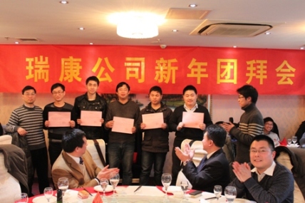 2013年1月底,公司2012年團(tuán)拜聚會(huì)在南京萬家歡酒店隆重舉行,全國(guó)各地的瑞康同仁齊聚一堂,總結(jié)了12年的工作成就,共同展望公司的美好未來。期間,表彰和嘉獎(jiǎng)了公司表現(xiàn)突出的部門和員工,并頒發(fā)了2011和2012年瑞康初級(jí)工程師證書。